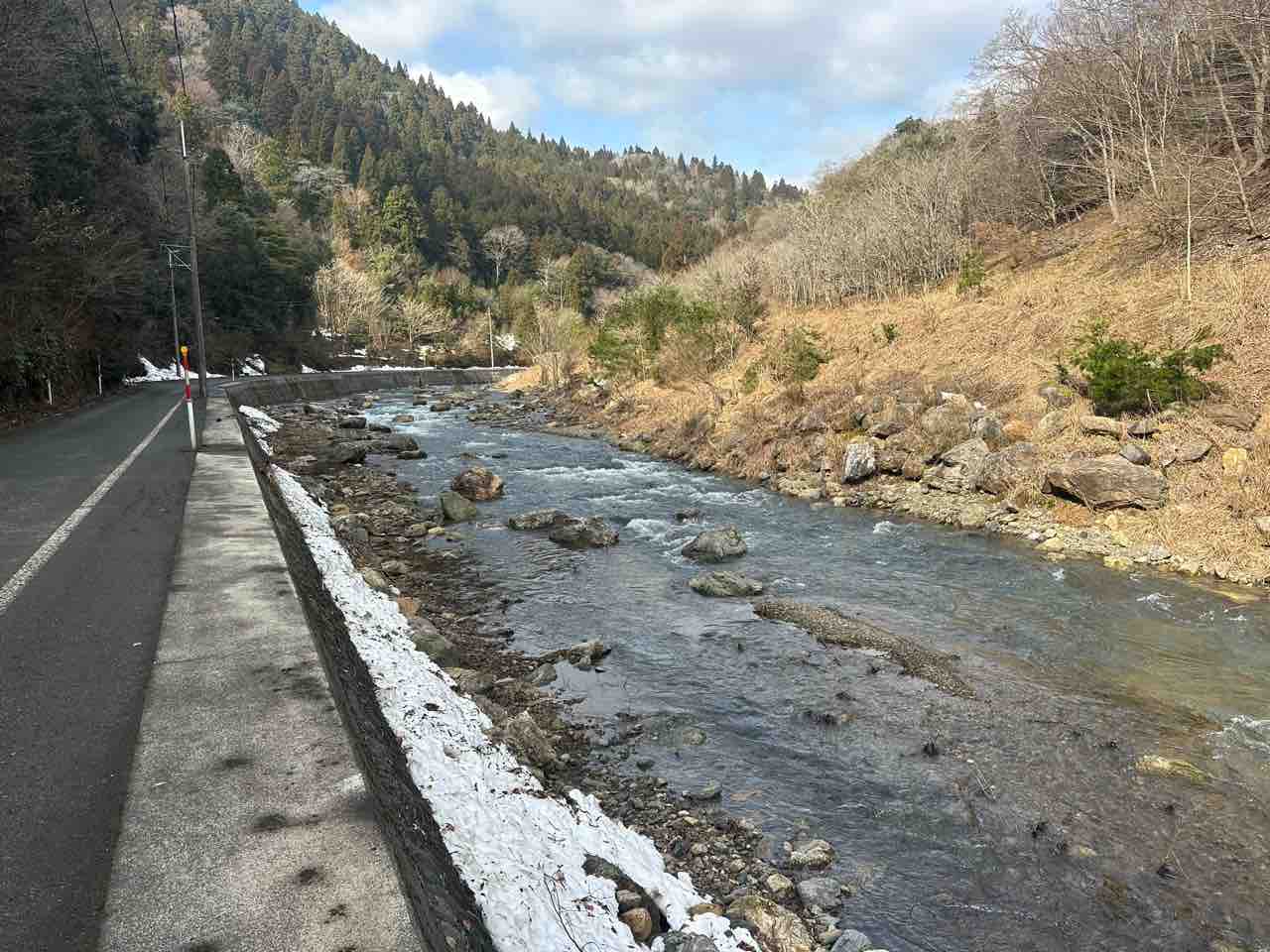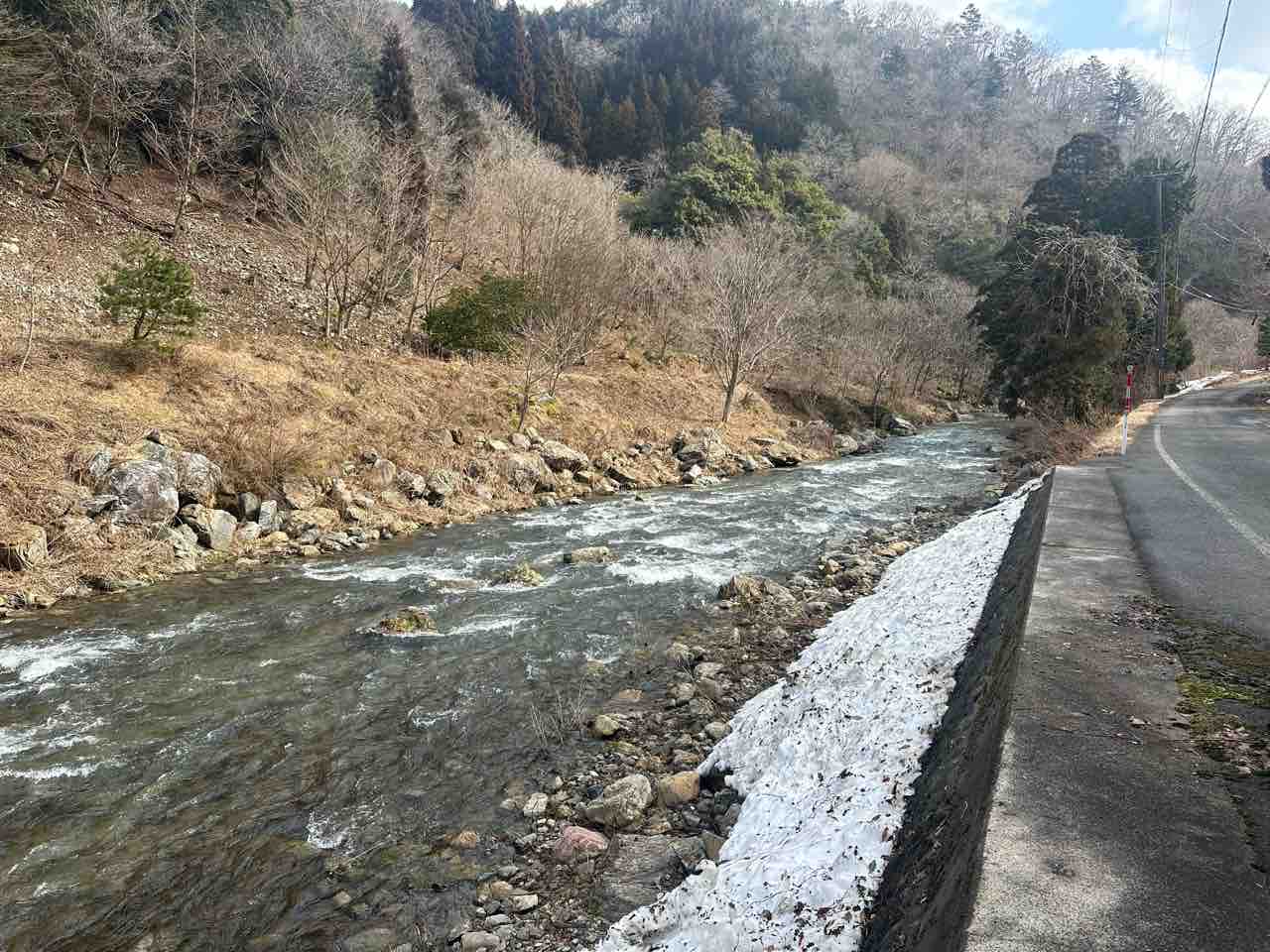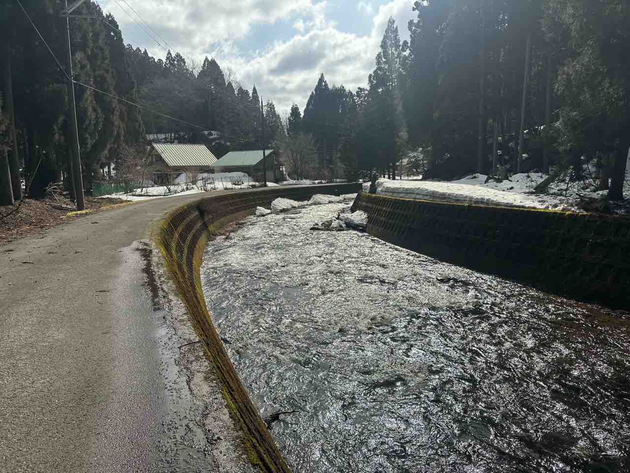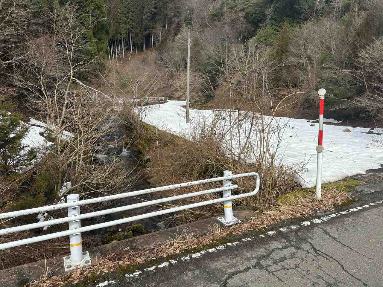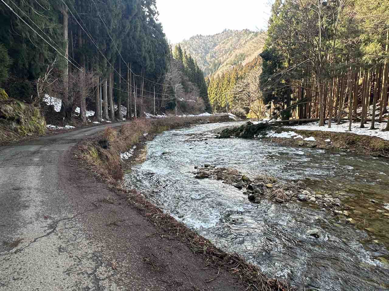 ↓谷川へ通じる道は除雪されてなく