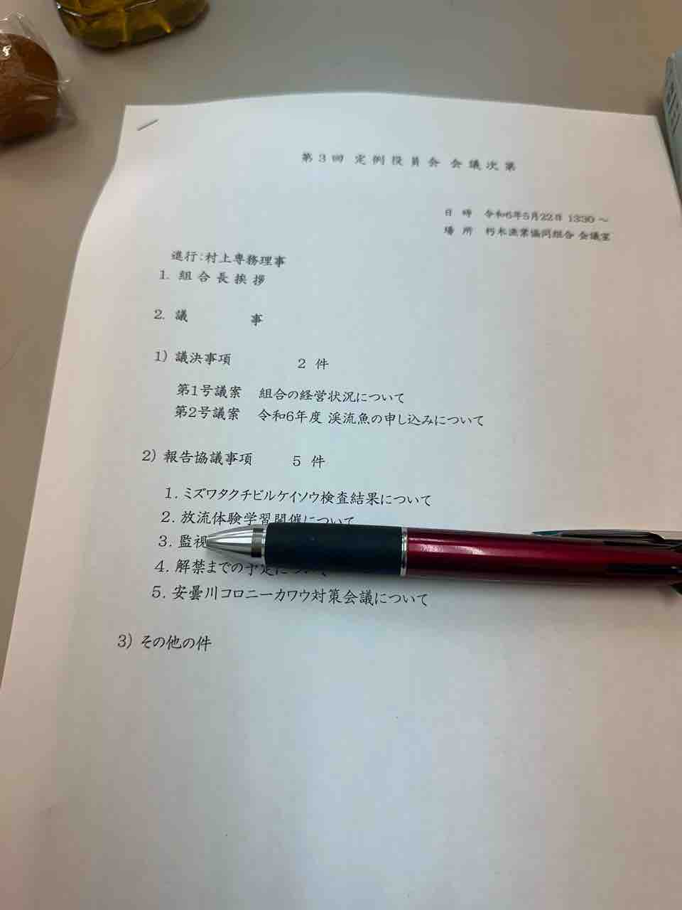 第5回の朽木漁協定例役員会がありました。