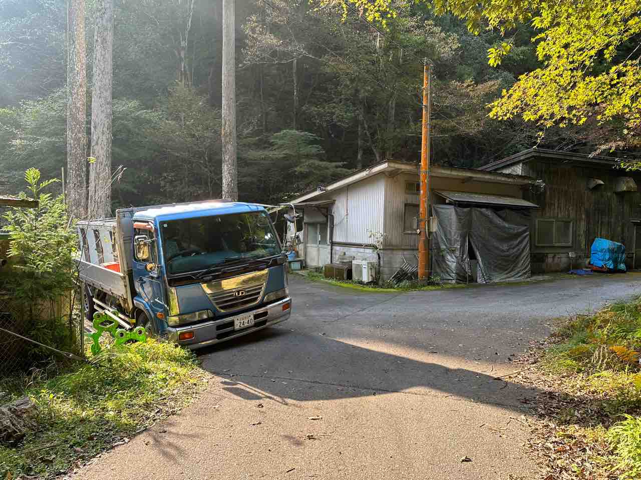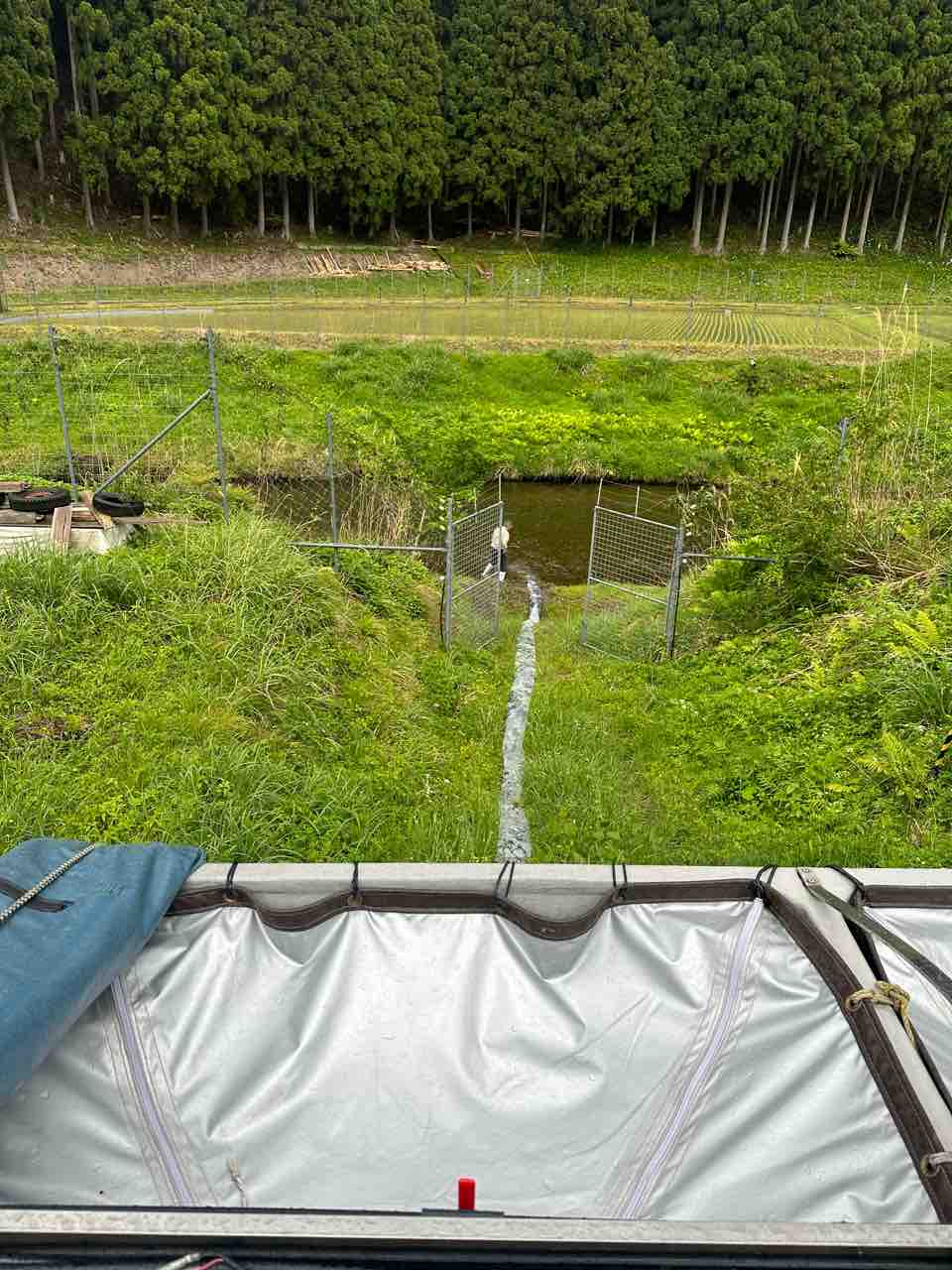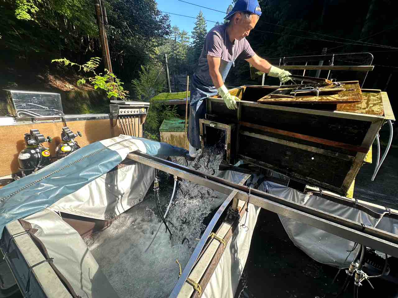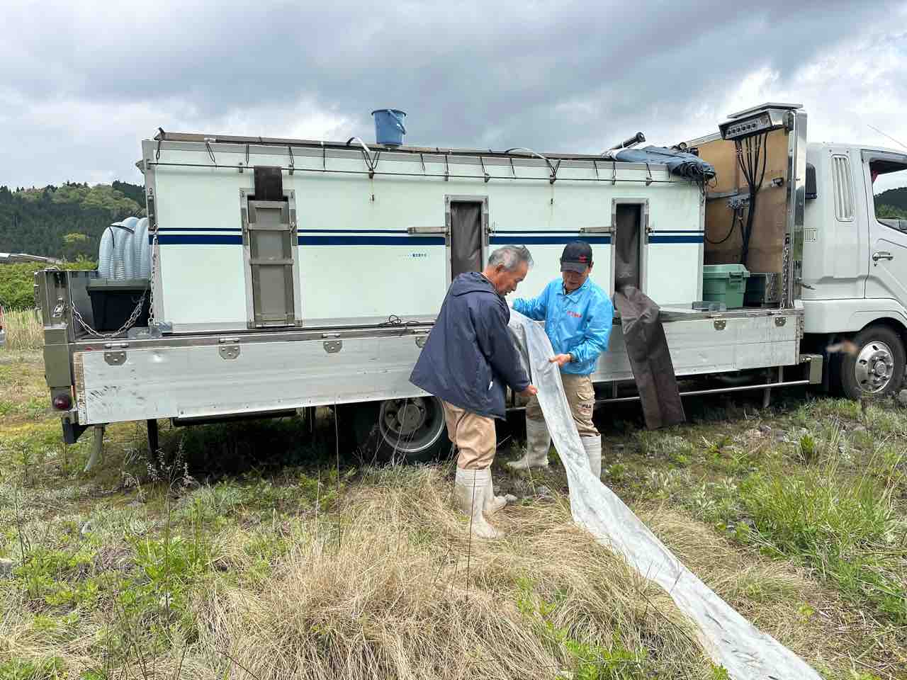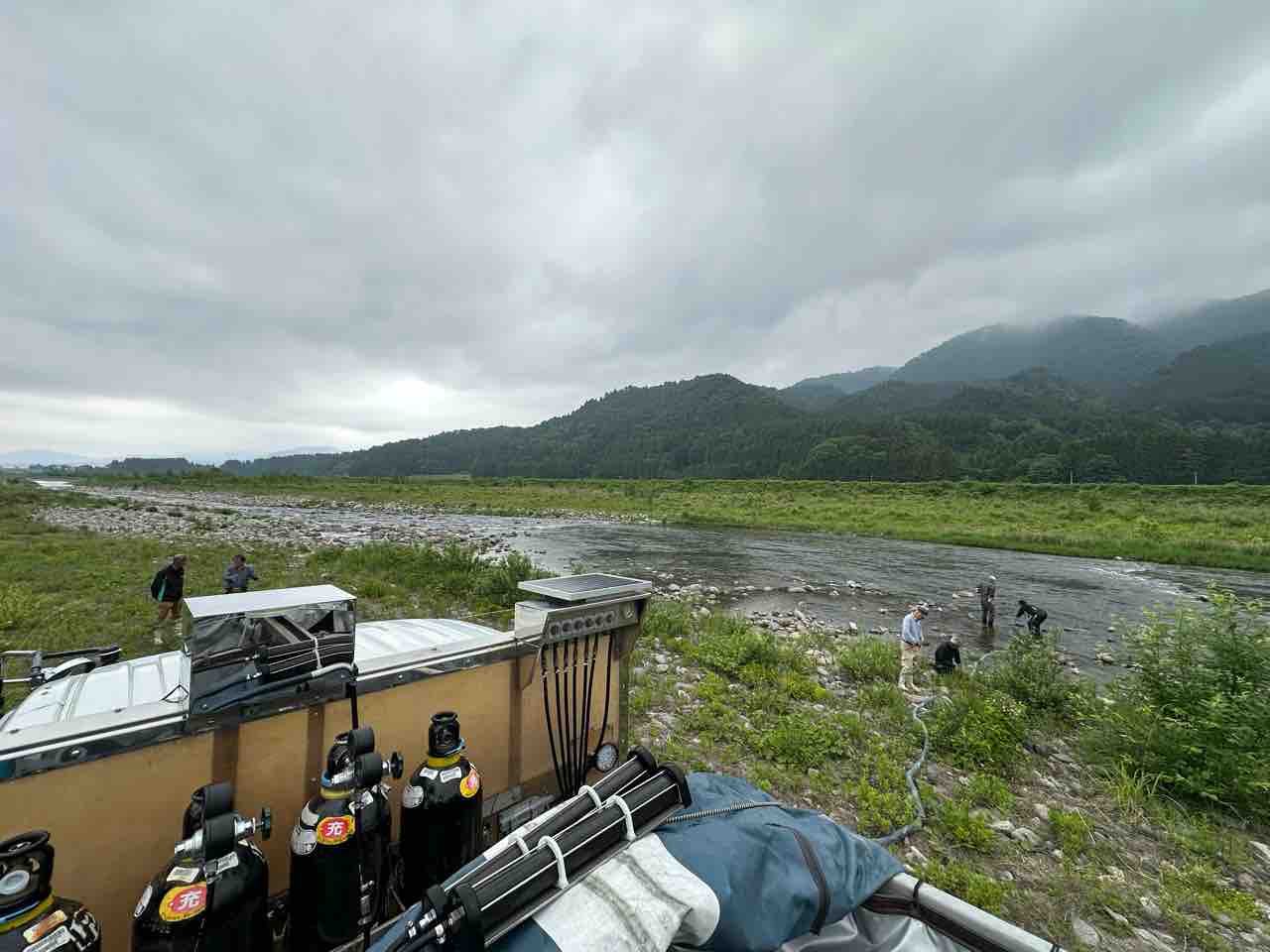 川村組合長は毎日漁協の軽トラでヤナ場と朽木をピストン輸送しています。