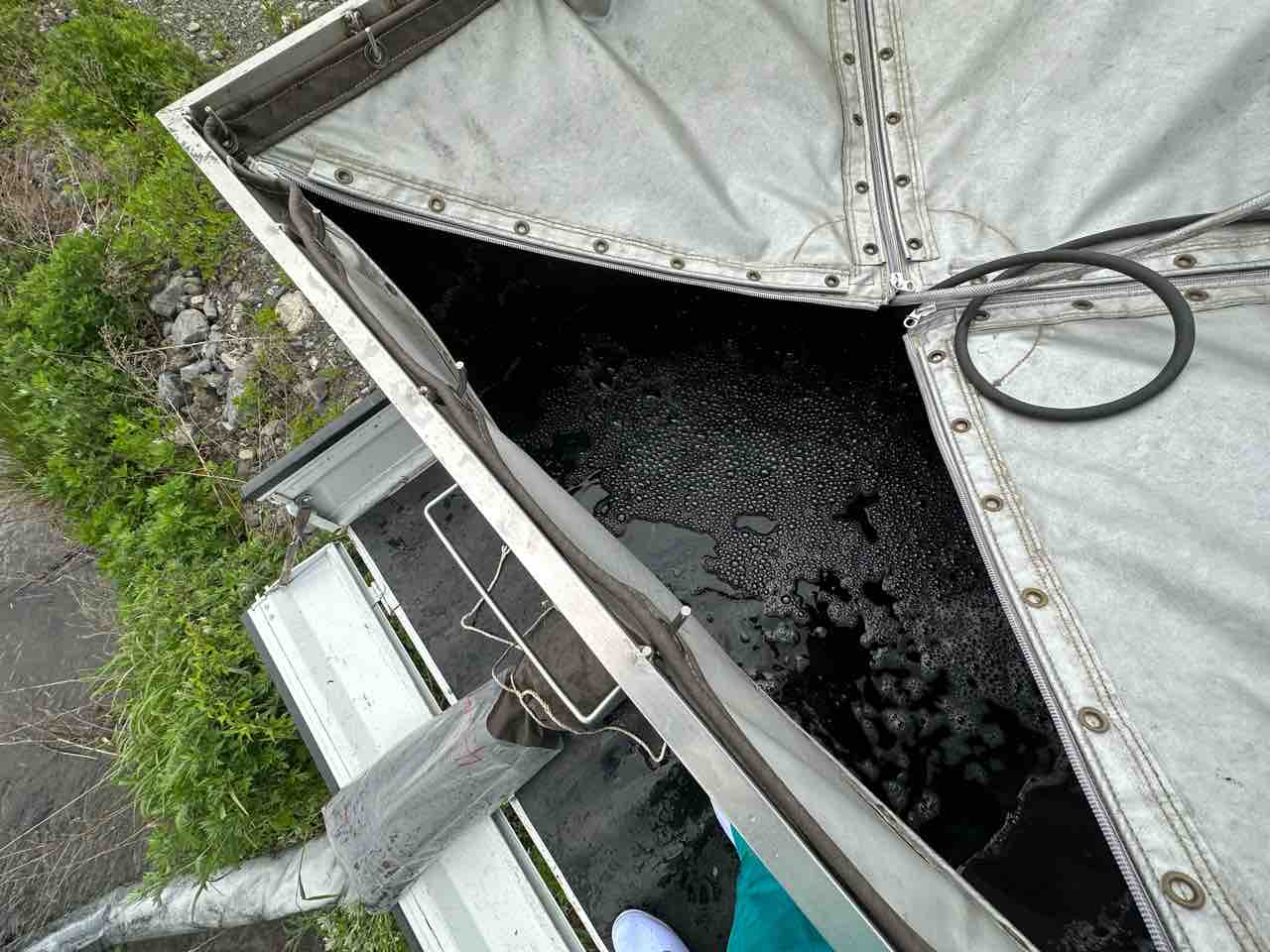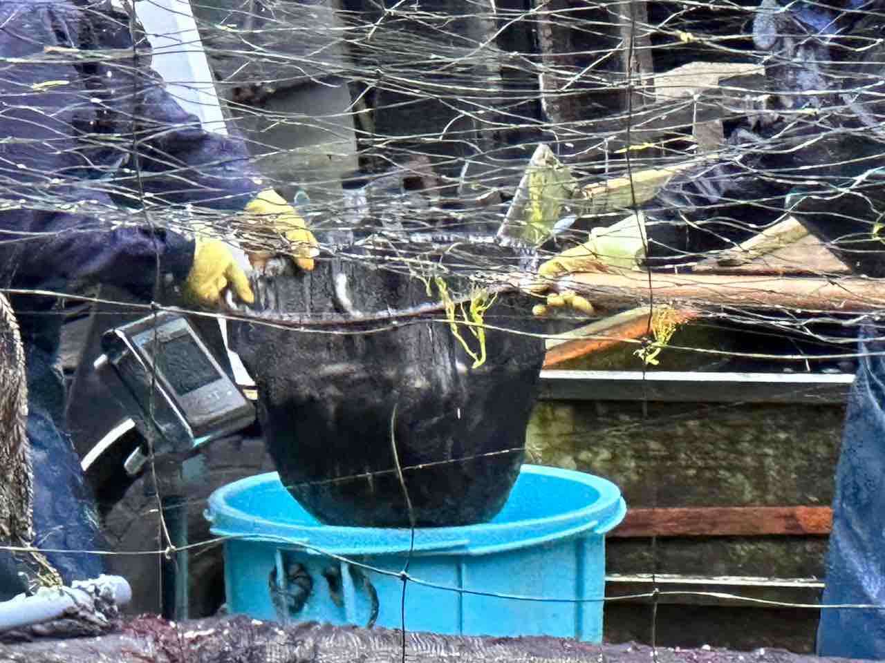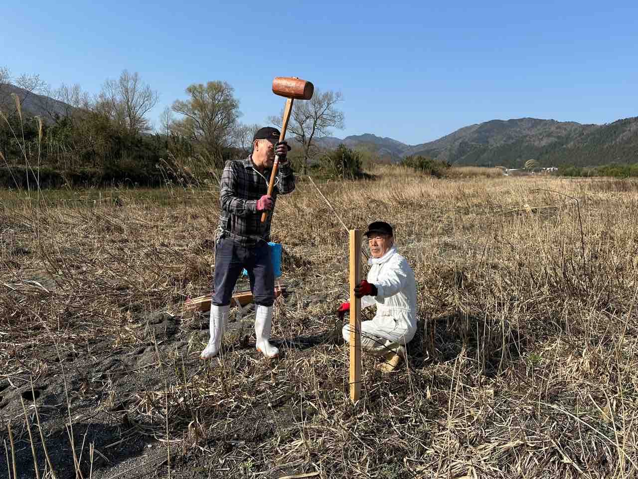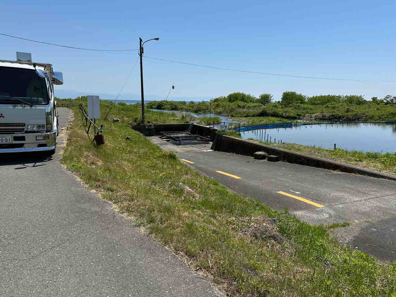 川村組合長は毎日漁協の軽トラでヤナ場と朽木をピストン輸送しています。