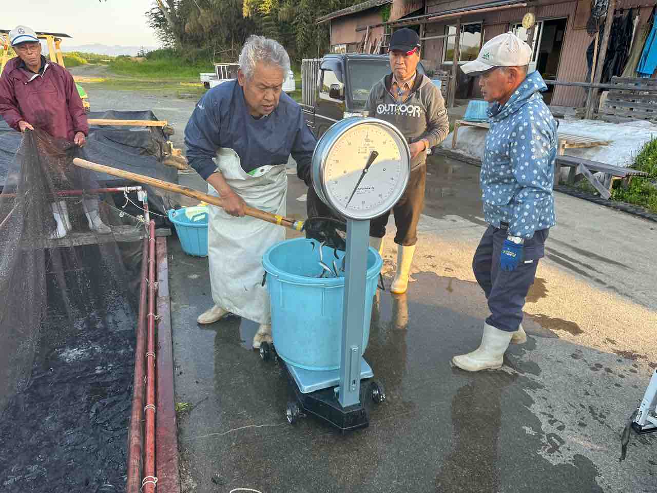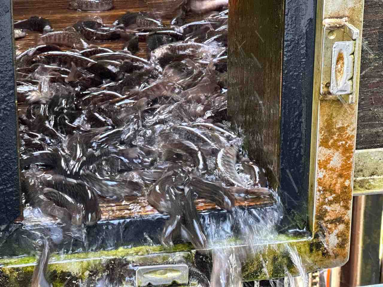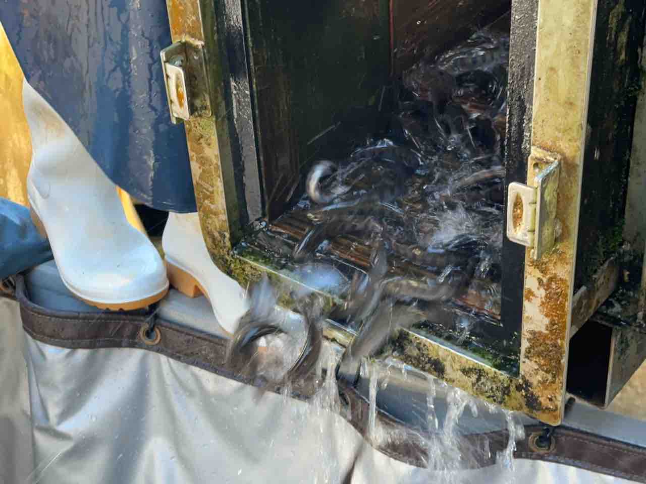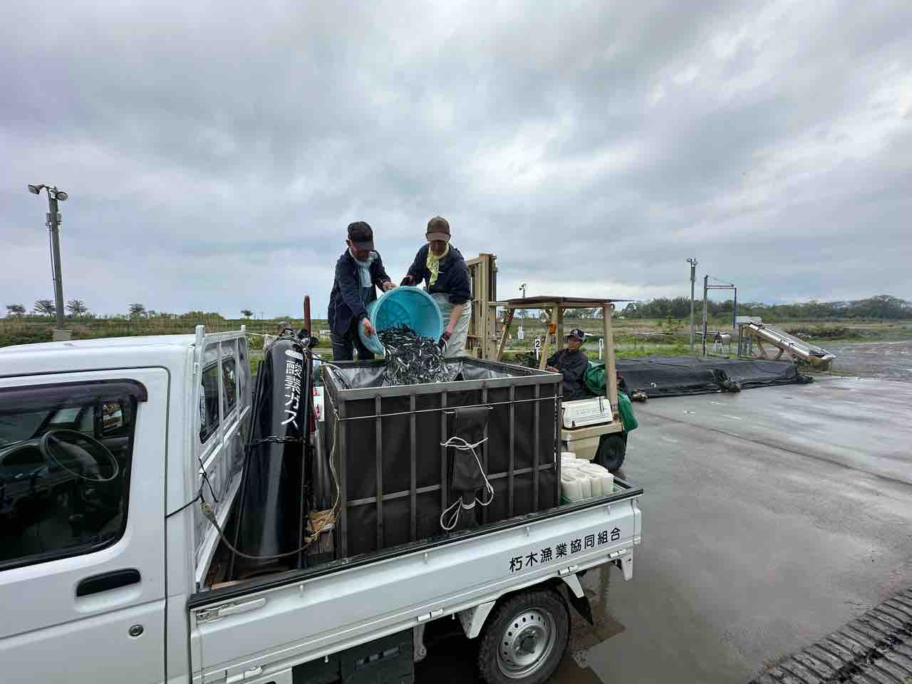 安曇川河口の船木ヤナで300kg積込み