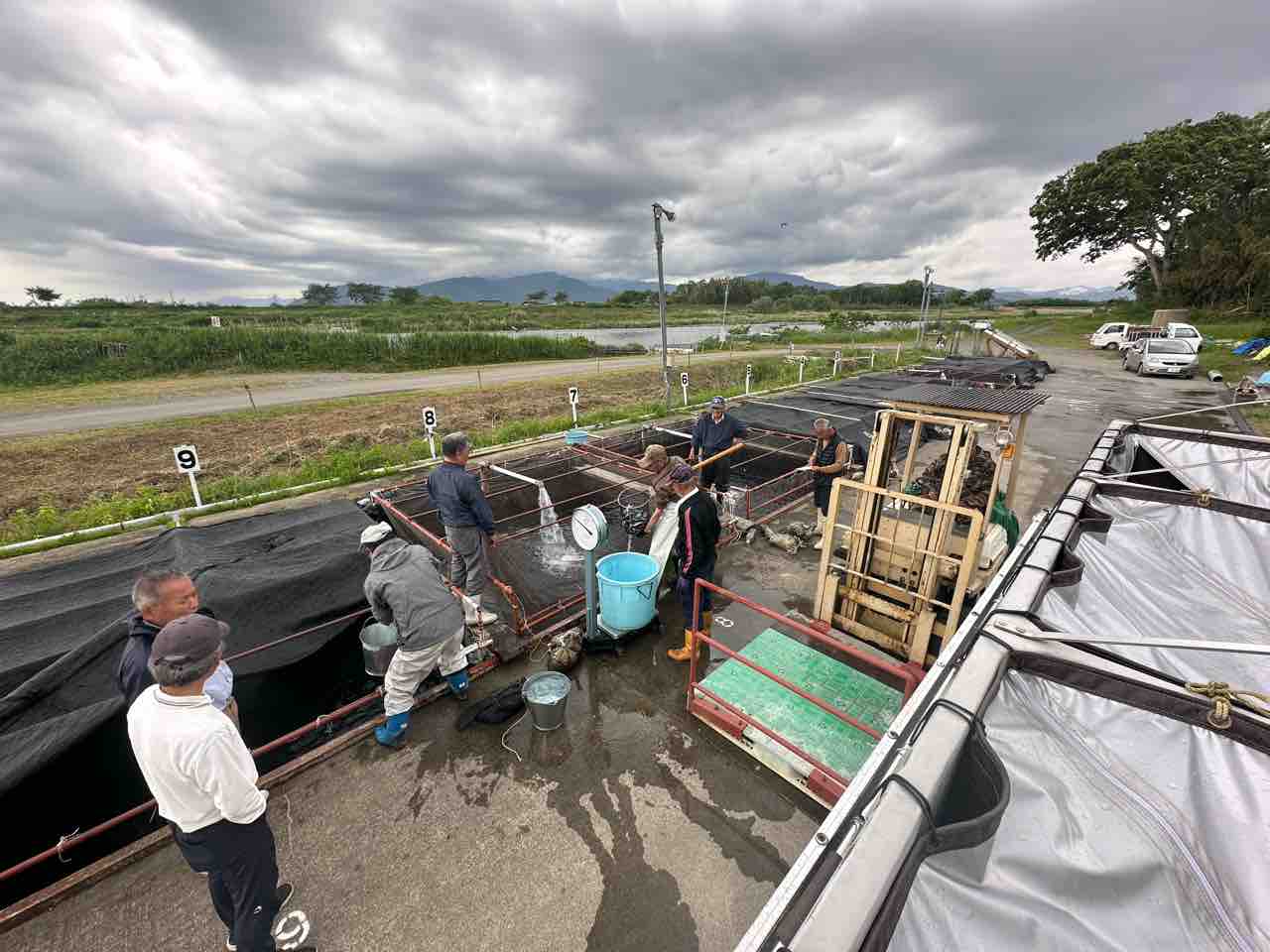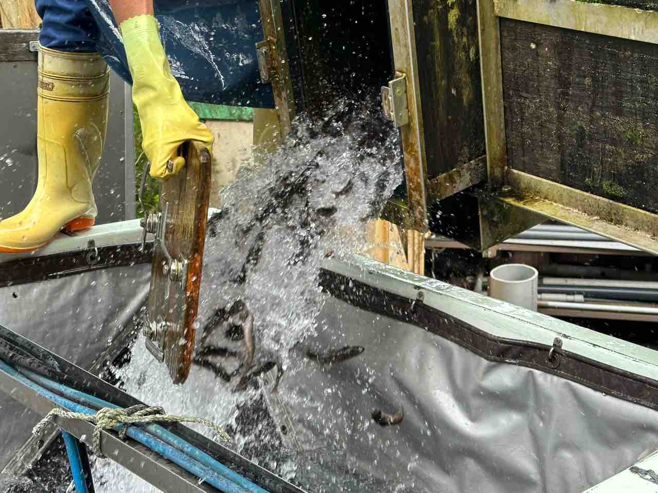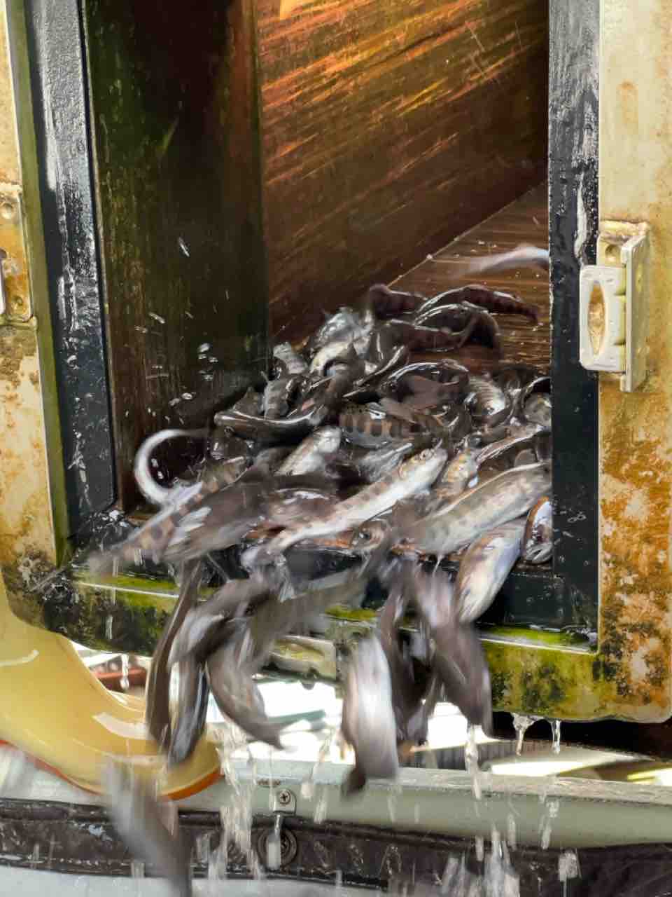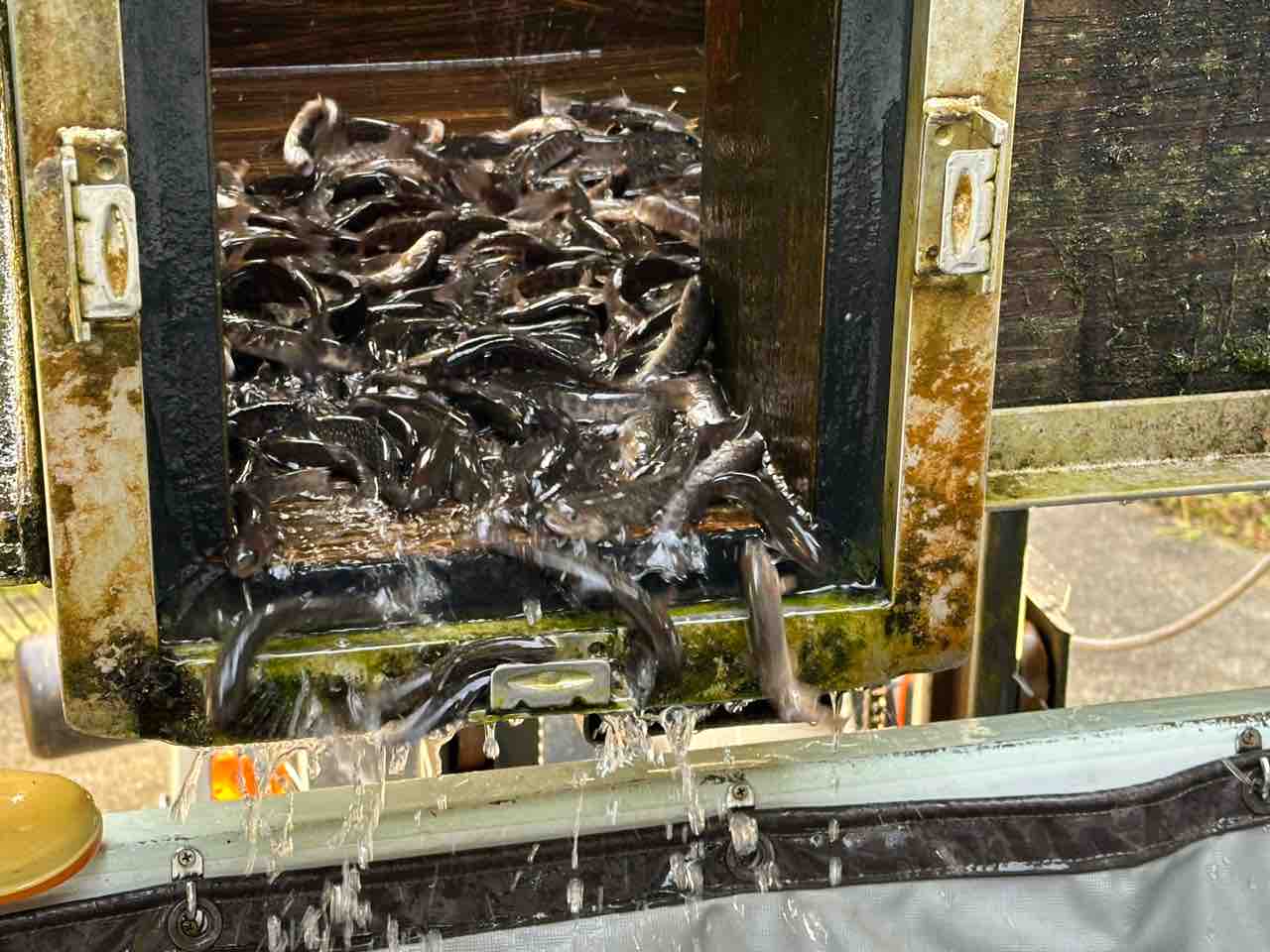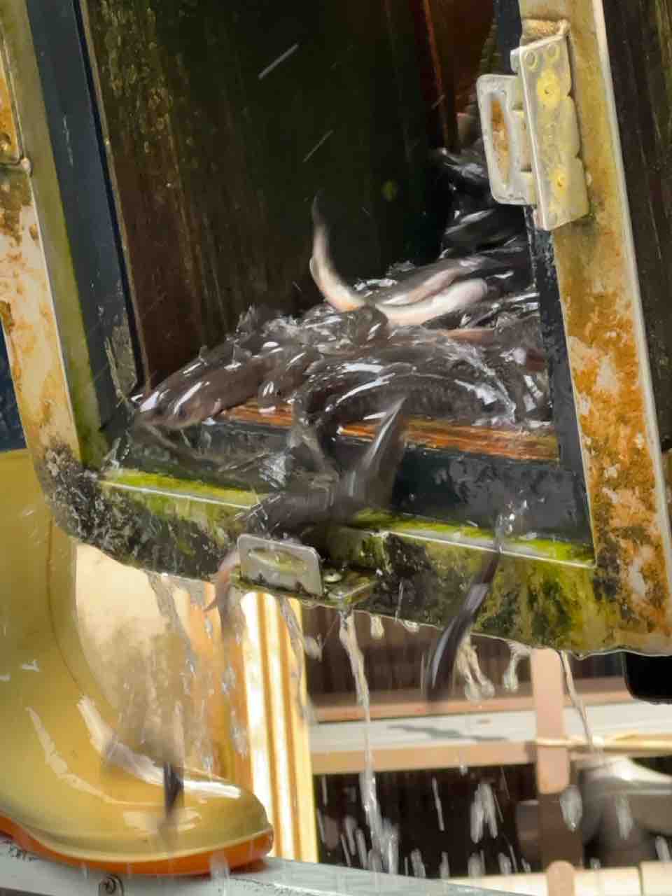 安曇川河口の船木ヤナで300kg積込み