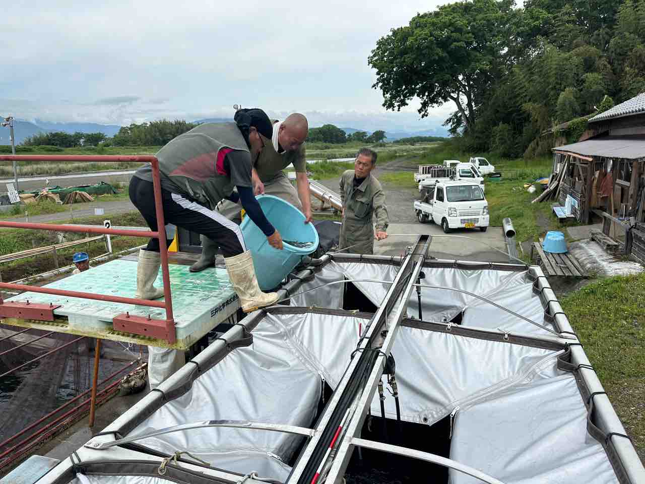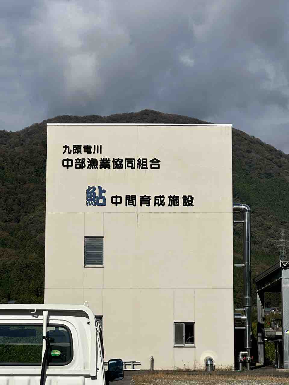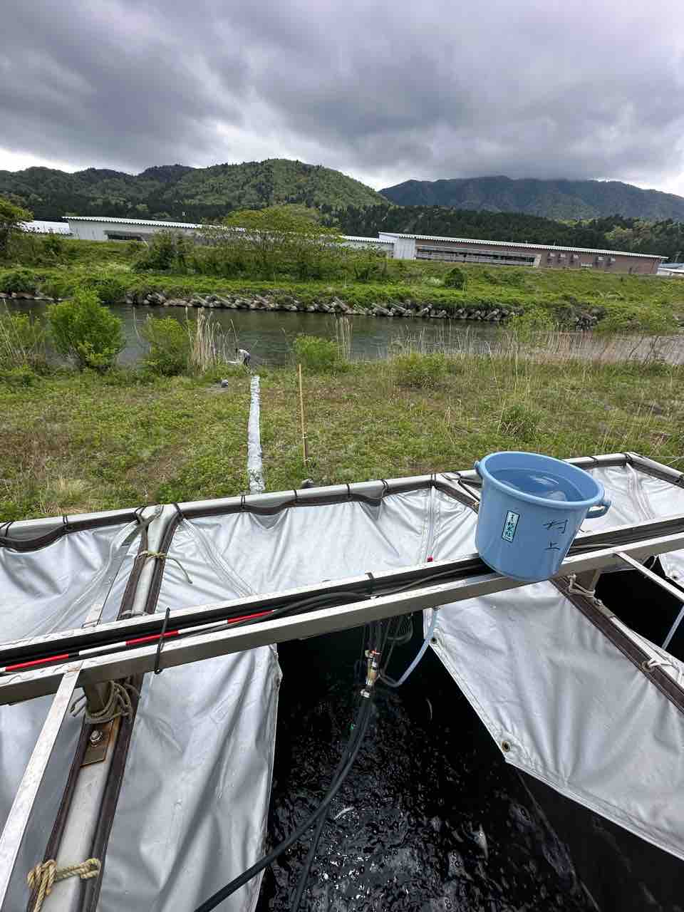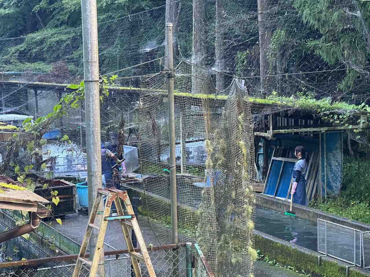 飯島地区にある鮎の中間育成施設を