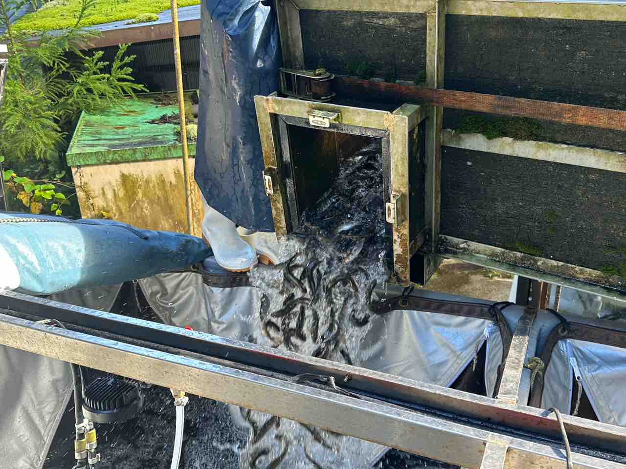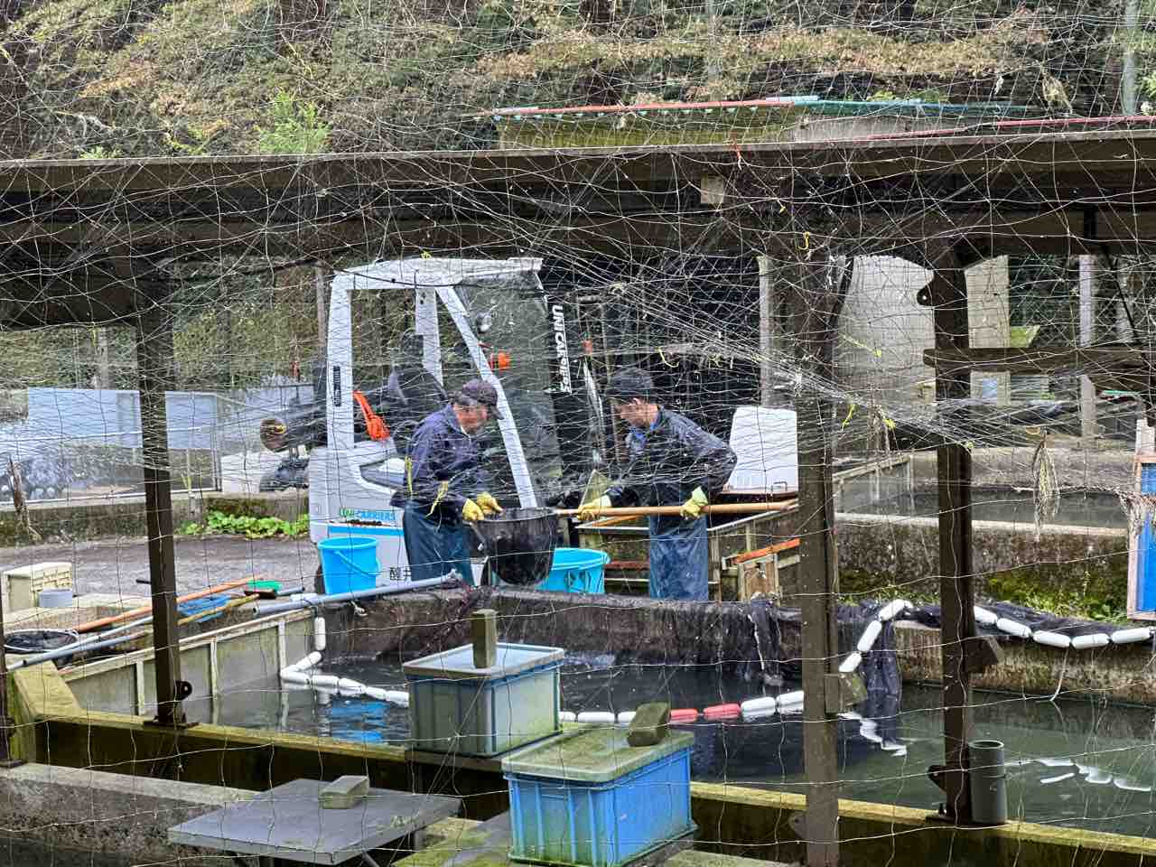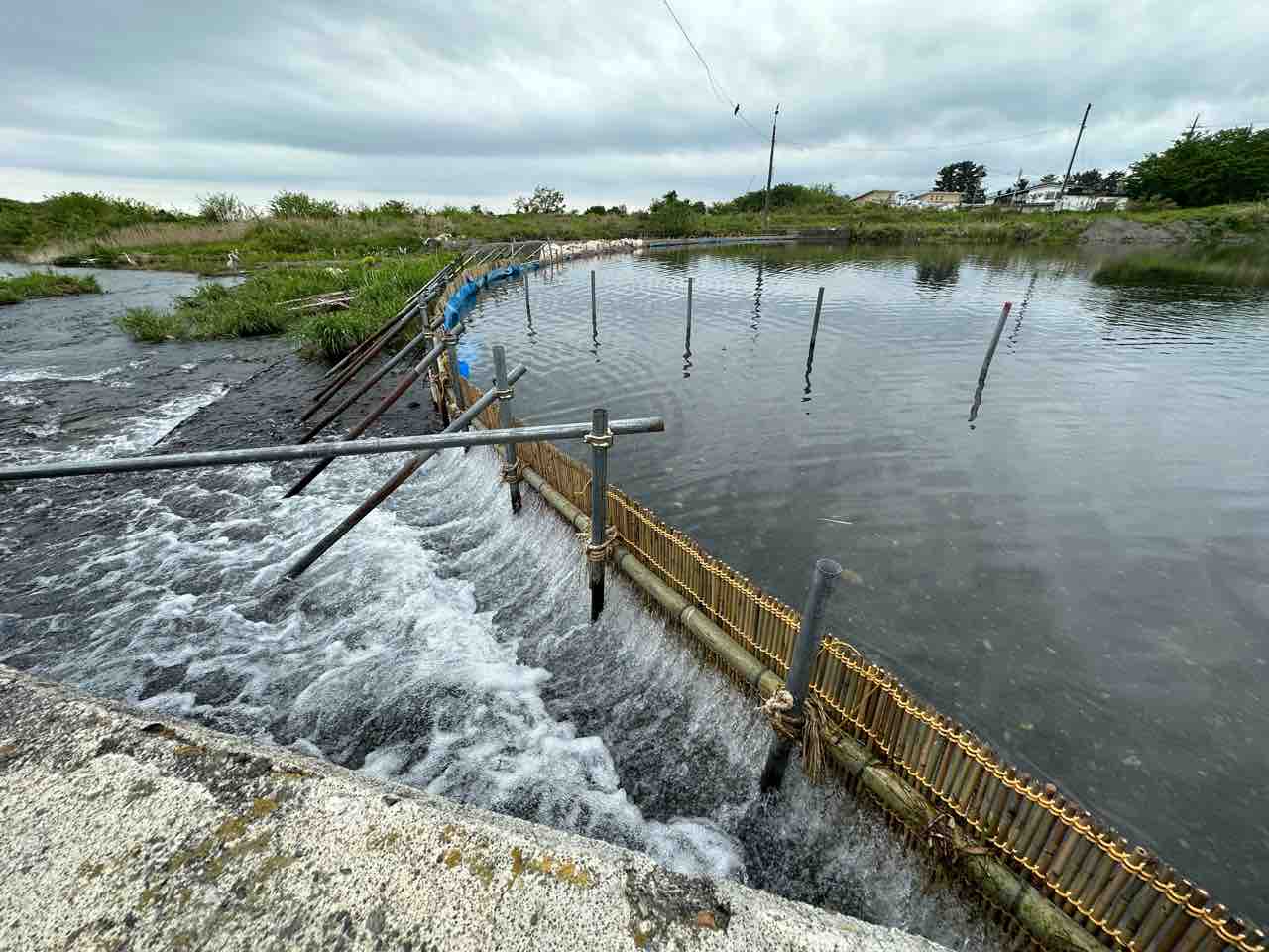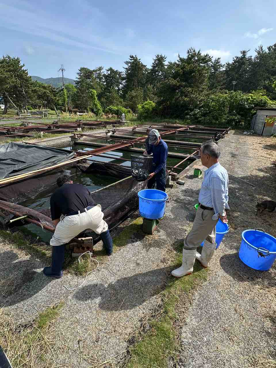飯島地区にある鮎の中間育成施設を