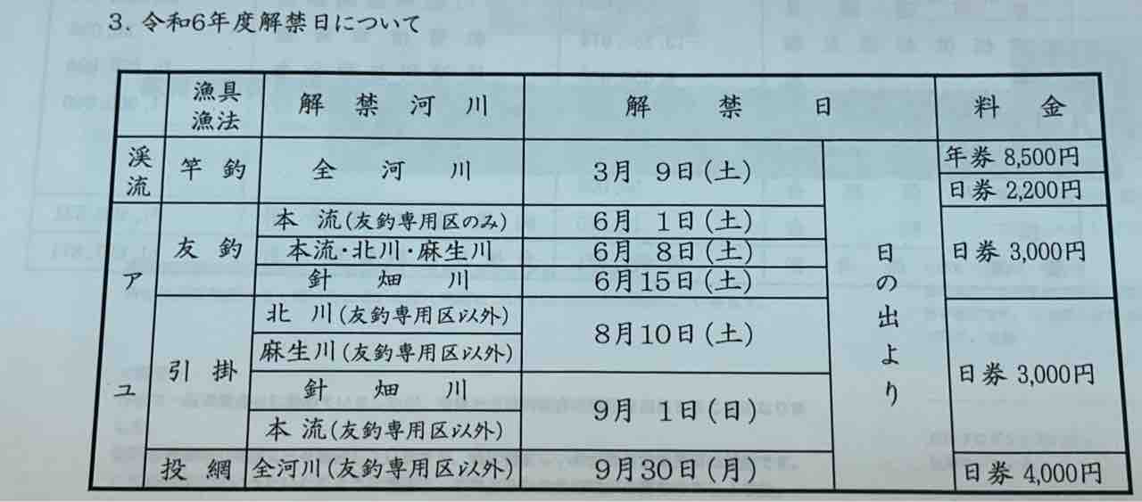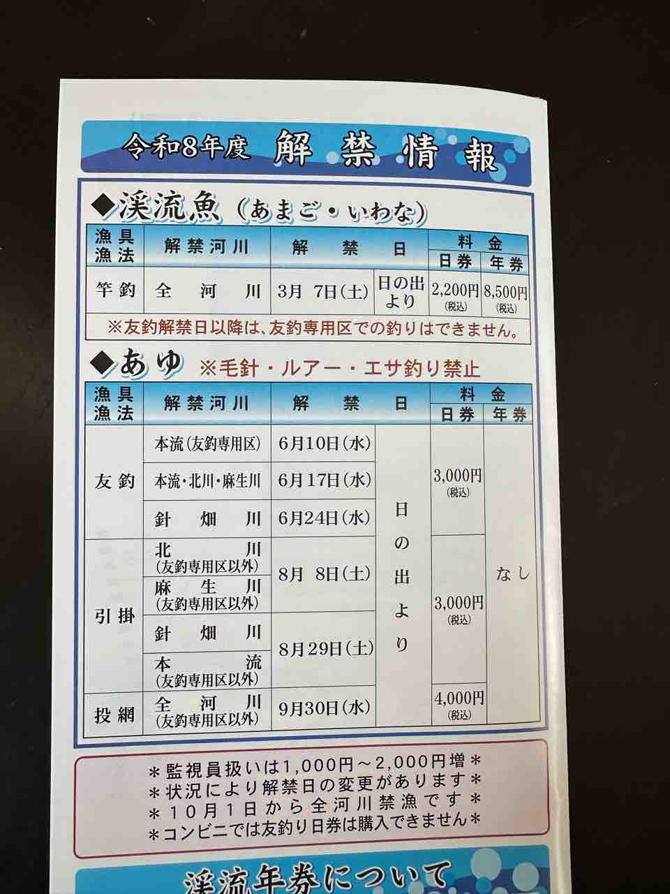 友釣り解禁日は表紙に明記の通り