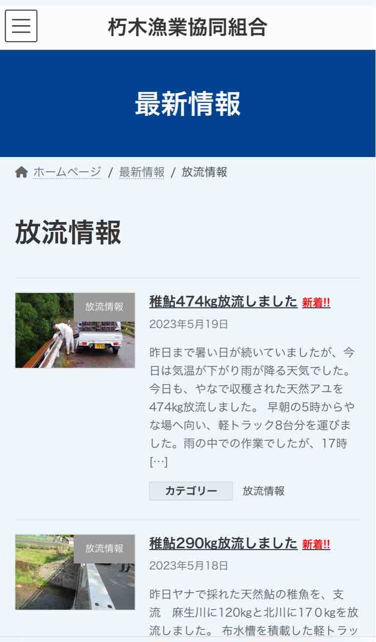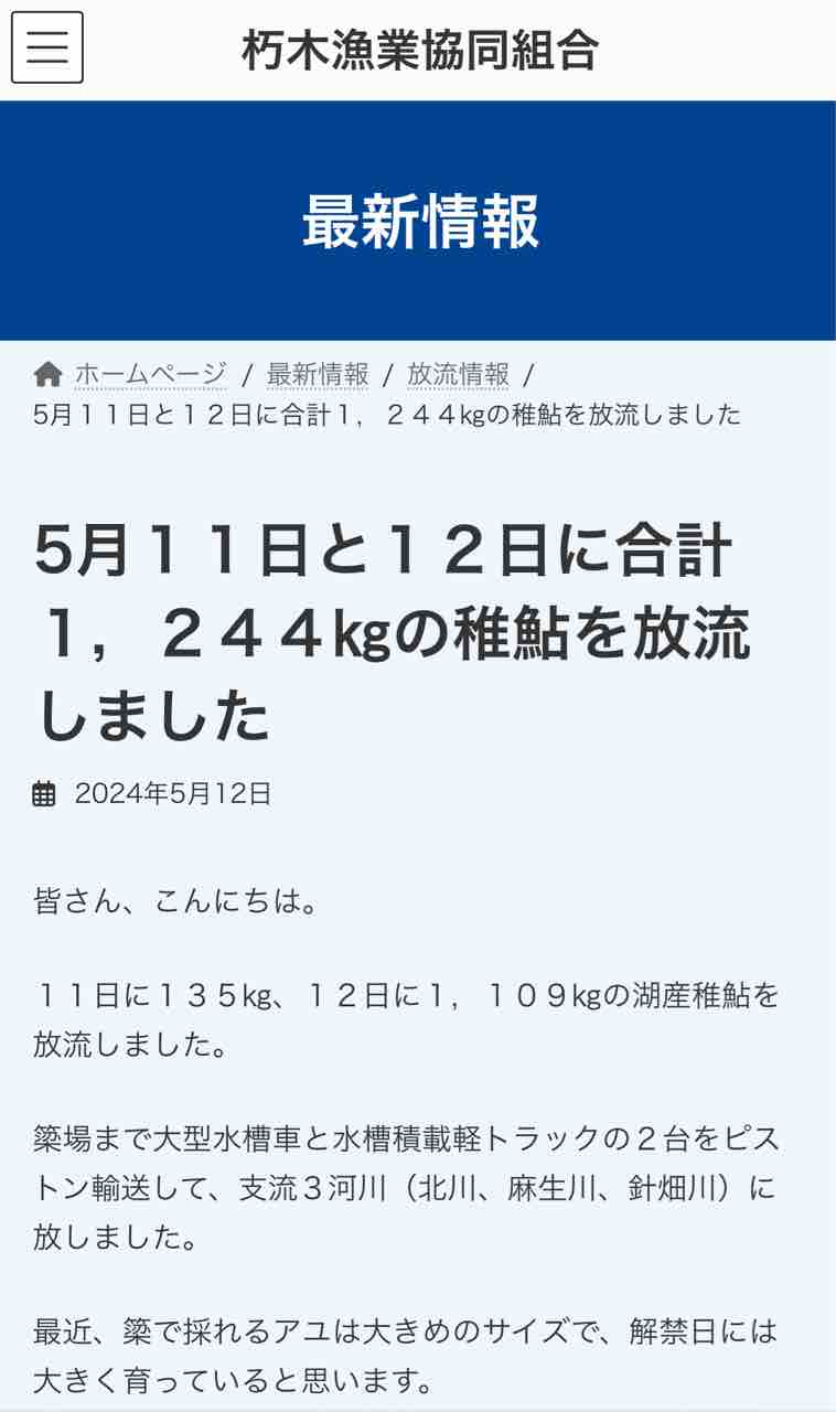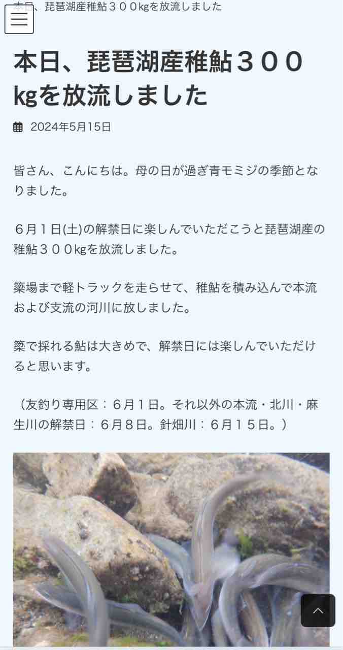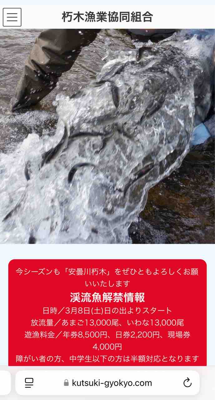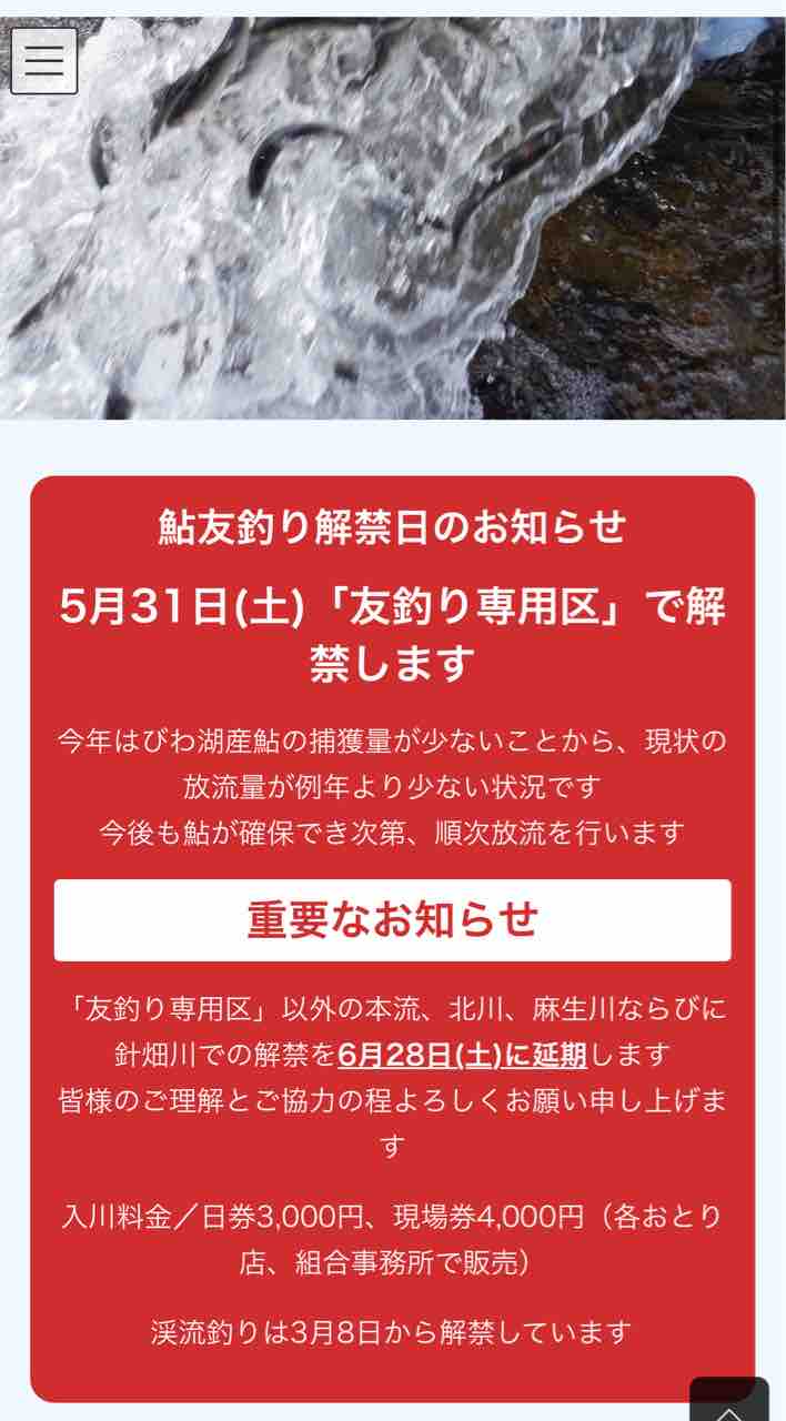 朽木漁協HPのトップページでも