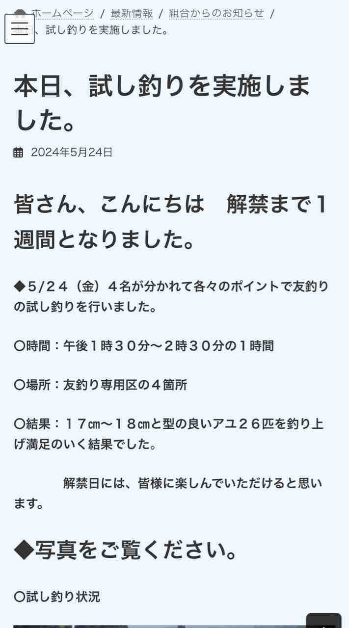 上桂川漁協さんのホームページの